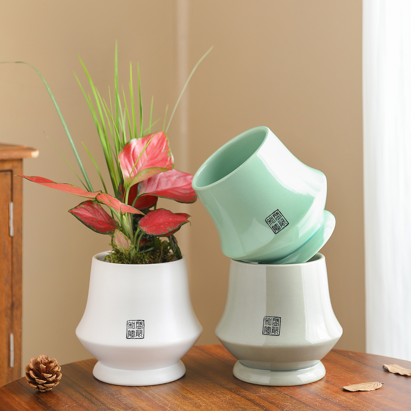 花盆陶瓷白色轻奢简约特价 清仓大号带托盘家用绿萝吊兰多肉小花盆