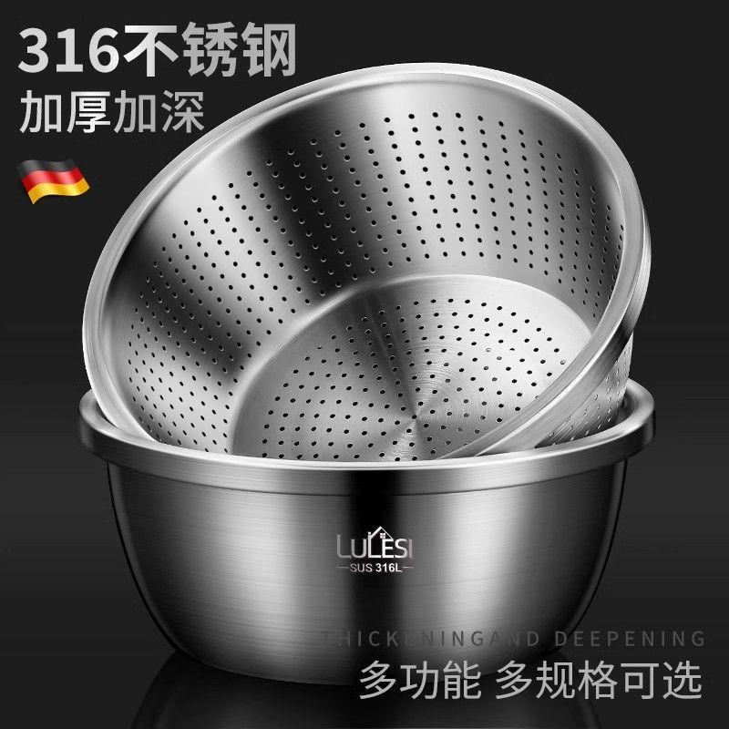 三四钢®304不锈钢盆316食品级加厚汤碗家用洗菜盆沥水篮套装 汤盆