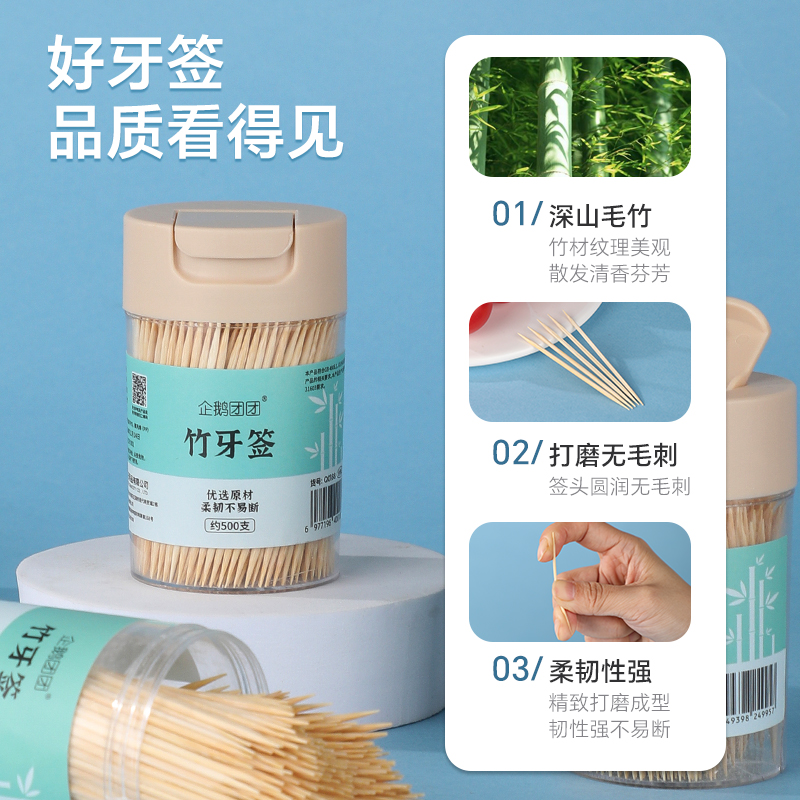 牙签盒饭店专用餐饮商家用批发食品级高档瓶装 双头竹制 一次性筒装