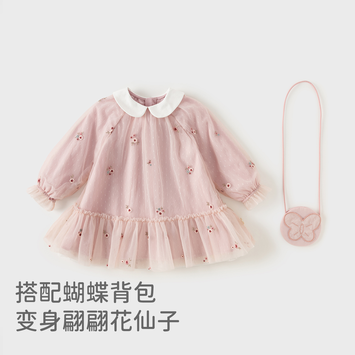 裙 少女风提花蝴蝶结饰收腰衬衫 KEIKO 学院风条纹娃娃领连衣裙秋季