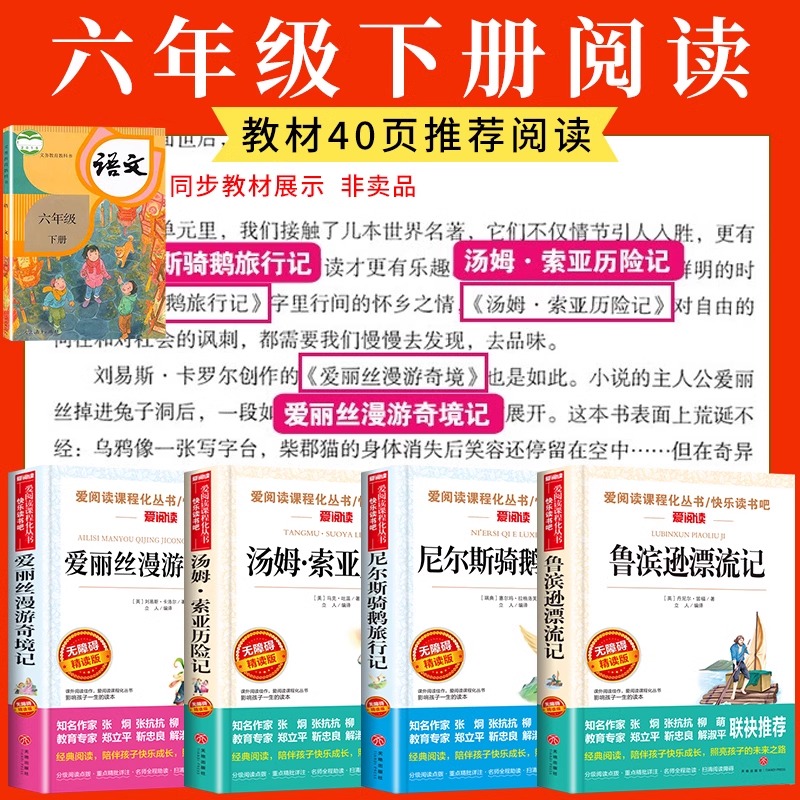 天地 快乐读书吧6阅读书籍汤姆索亚历险记骑鹅旅行记爱丽丝漫游奇境孙B科学经典 4册鲁滨逊漂流记六年级下册必读正版 课外书完整版