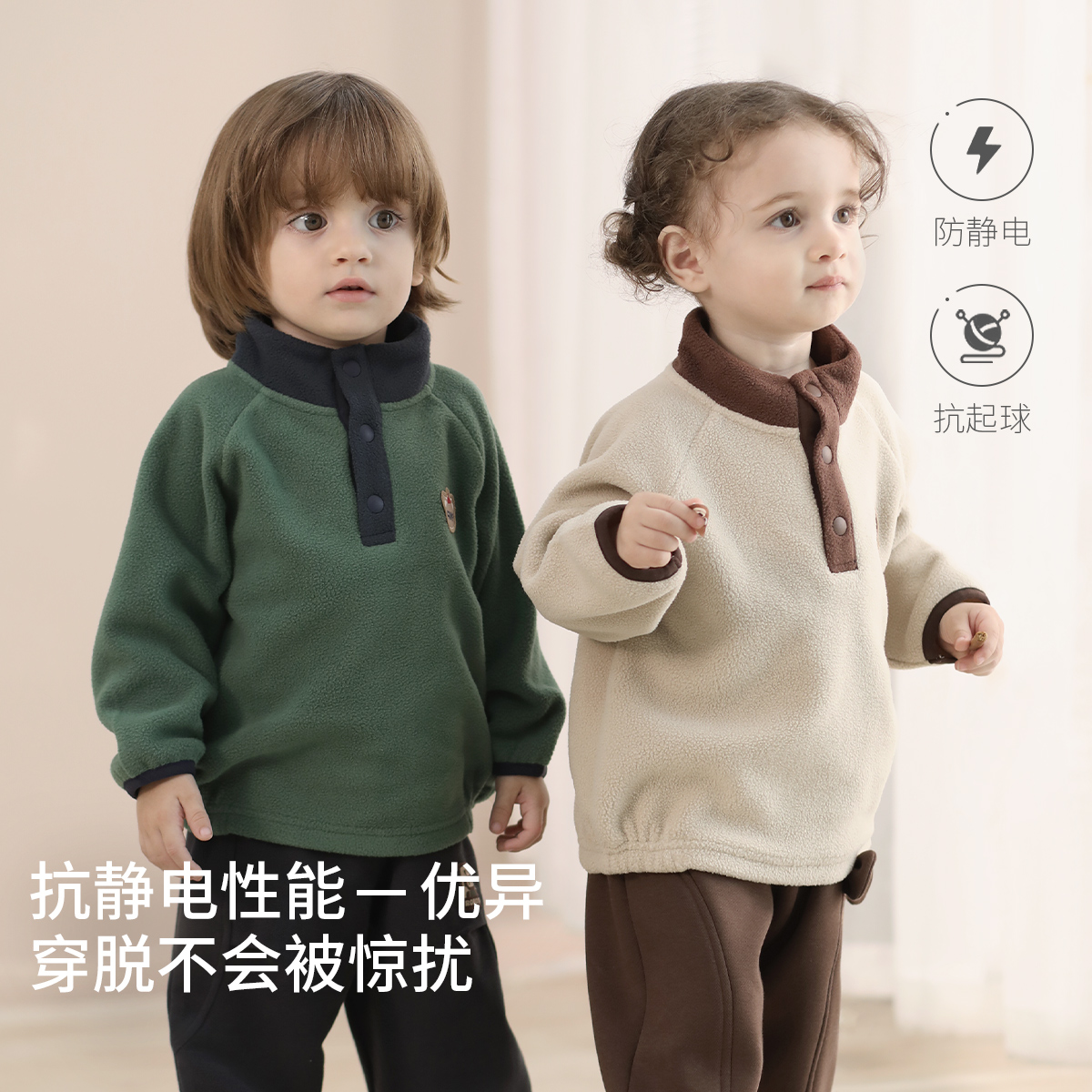 儿童卫衣秋冬男童加厚保暖女童半高领加绒秋装 衣服宝宝摇粒绒上衣