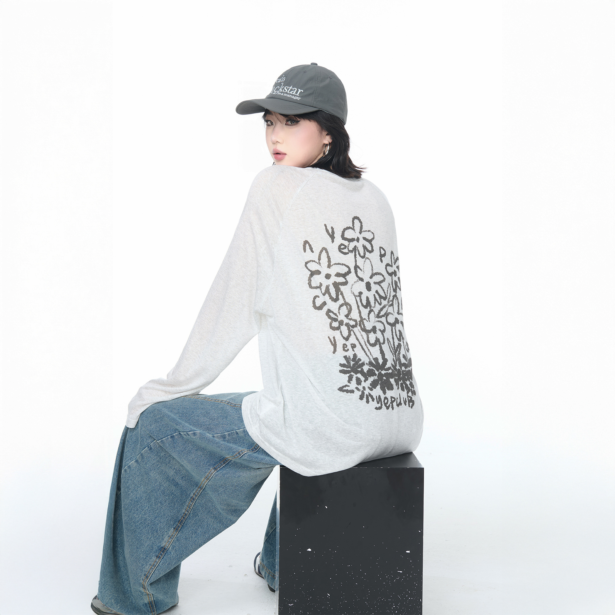 宽松轻薄微透防晒罩衫 美式 2025新款 夏季 慵懒风上衣 复古T恤女长袖
