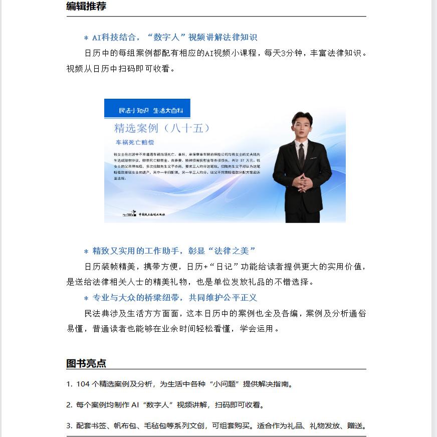每日案例分析箴言 日历 法条法律名词解析释 正版 民法典台历挂历精装 法律日历 新版 普法文创产品 2025年民法典日历:无规矩不成法