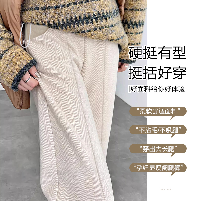子秋冬款 孕妇裤 外穿阔腿裤 秋冬季 人字纹加绒加厚直筒裤 浪莎孕妇裤