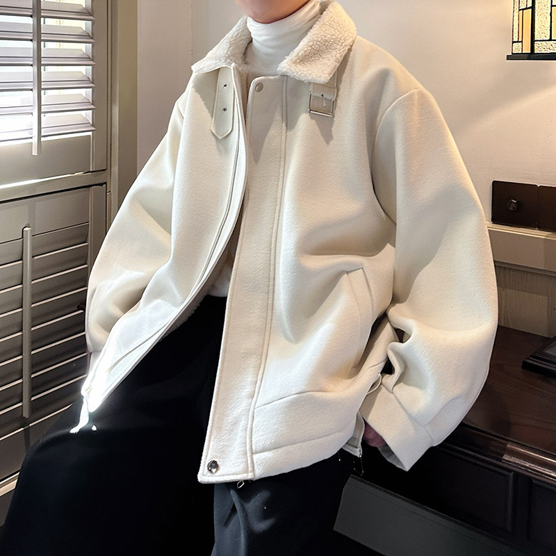 高级感短款 冬季 毛呢大衣保暖棉衣 翻领羊羔绒外套男款 cleanfit美式