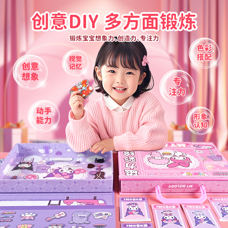 新款 儿童三丽鸥磁力安静书3到6岁女孩美乐蒂免裁剪磁性贴卡通玩具