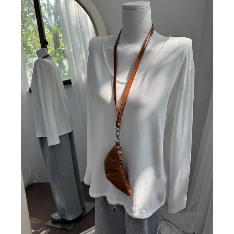 内搭长袖 慵懒宽松中长款 t恤chic上衣 女秋冬2025新款 白色v领打底衫