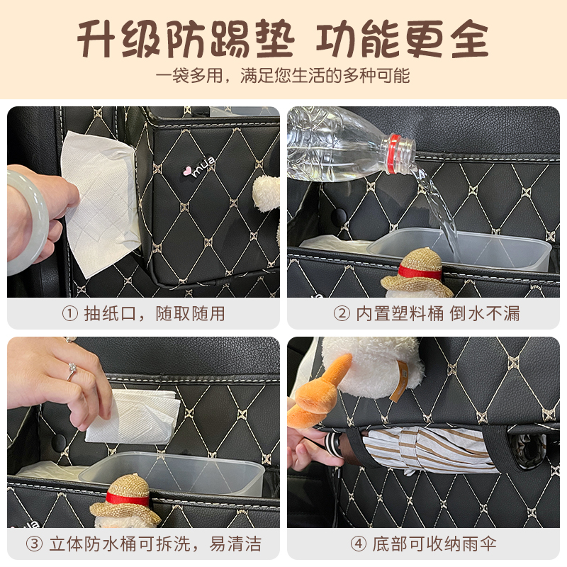 汽车防踢垫后排收纳袋通用车载后座防护垫保护椅背耐脏收纳神器女