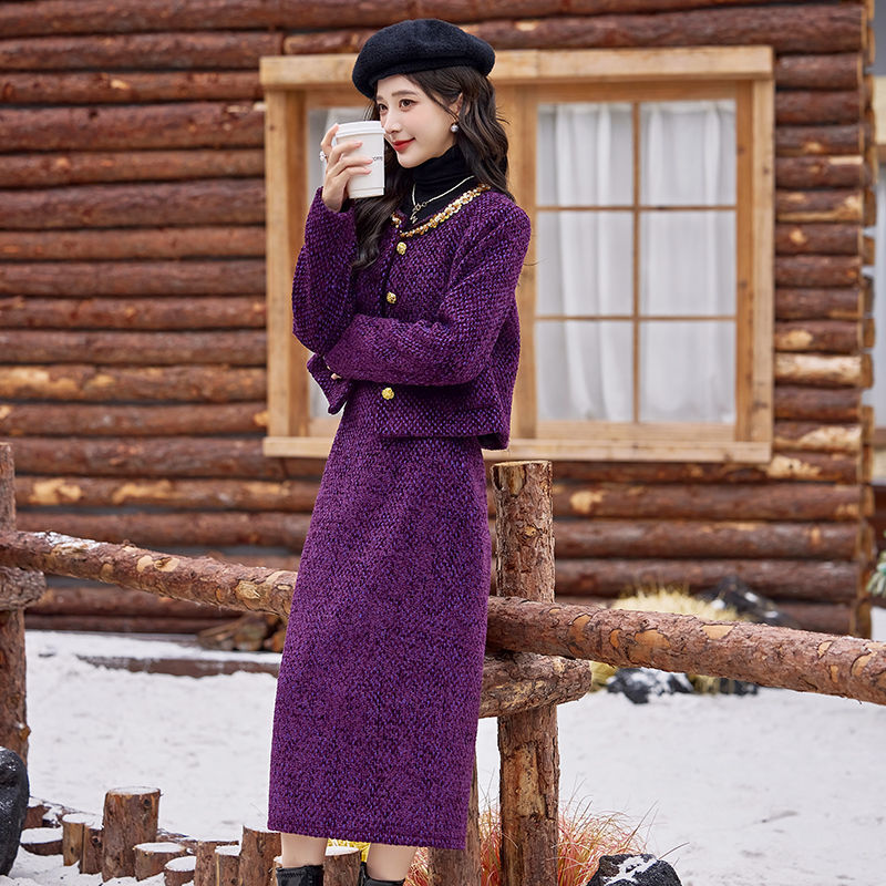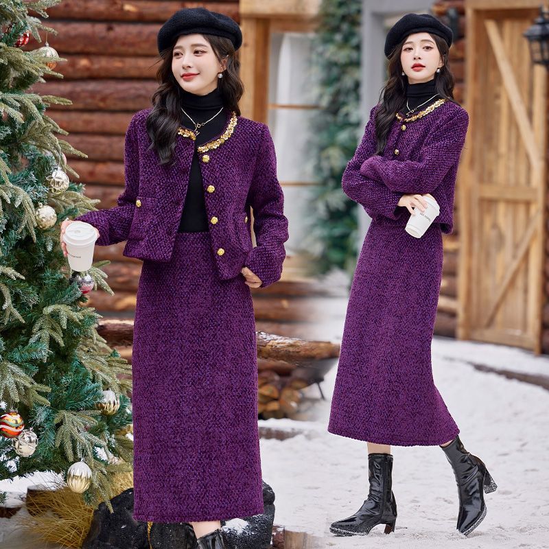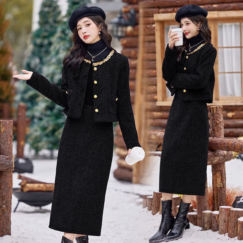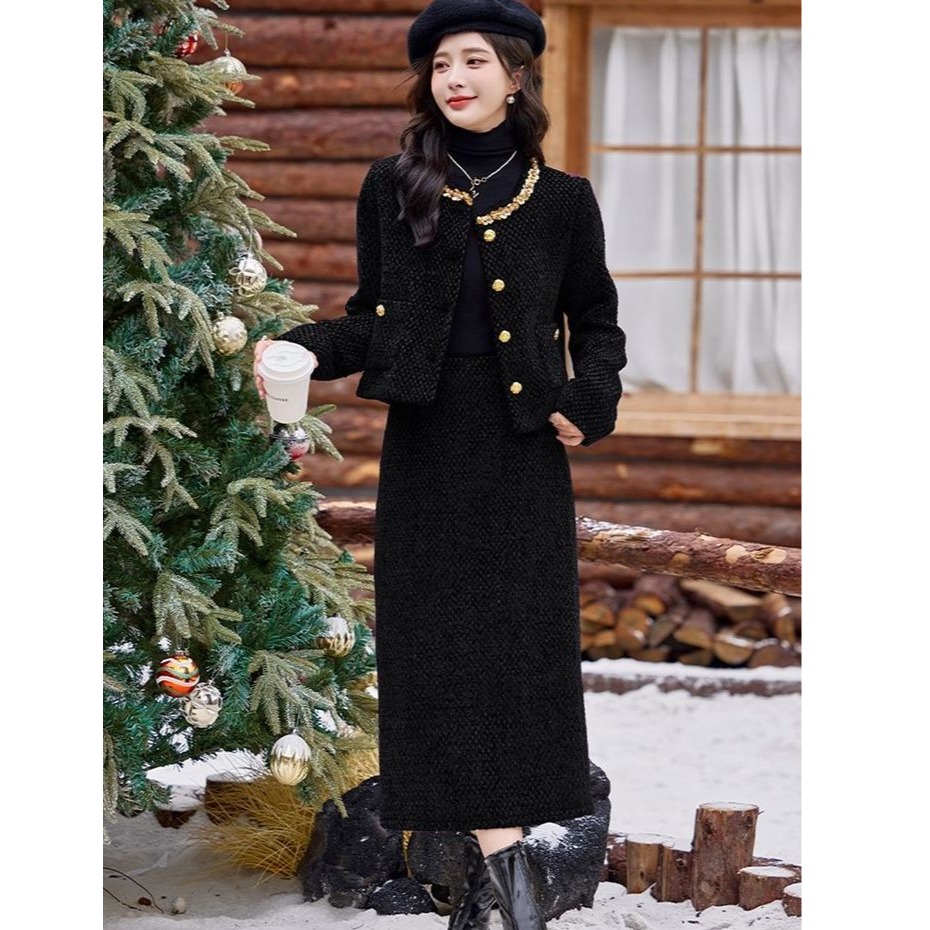 漂亮洋气减龄小香风两件套秋冬新款 高端外套半身裙穿搭一整套 女装