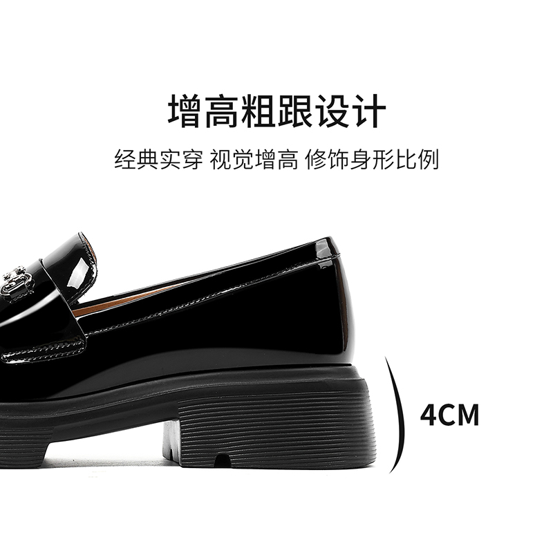 黑色亮面牛皮革深口单鞋 新款 HS257150 女厚底2025春季 哈森JK乐福鞋