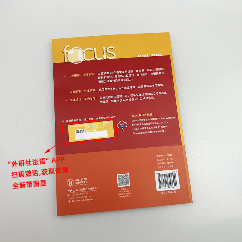 音频及文本 社 答案李扬帆编 法语口语表达能力外语教学与研究出版 9787521358629 法语听力理解 Focus法语听说进阶训练A1A2B1B2扫码