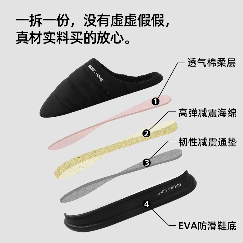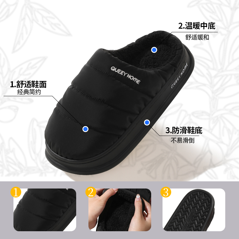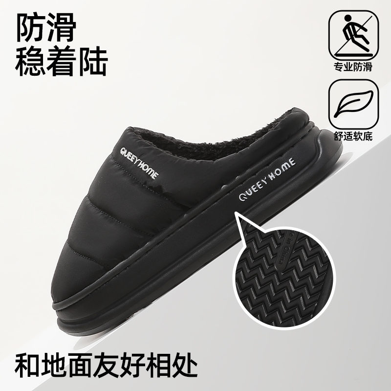家居室内厚底防滑加绒包头棉拖男冬季 防水棉拖鞋 2024新款 冬季 男士