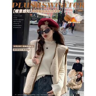 内搭上衣 长袖 加绒加厚一体绒针织打底衫 女木耳边半高领毛衣秋冬季