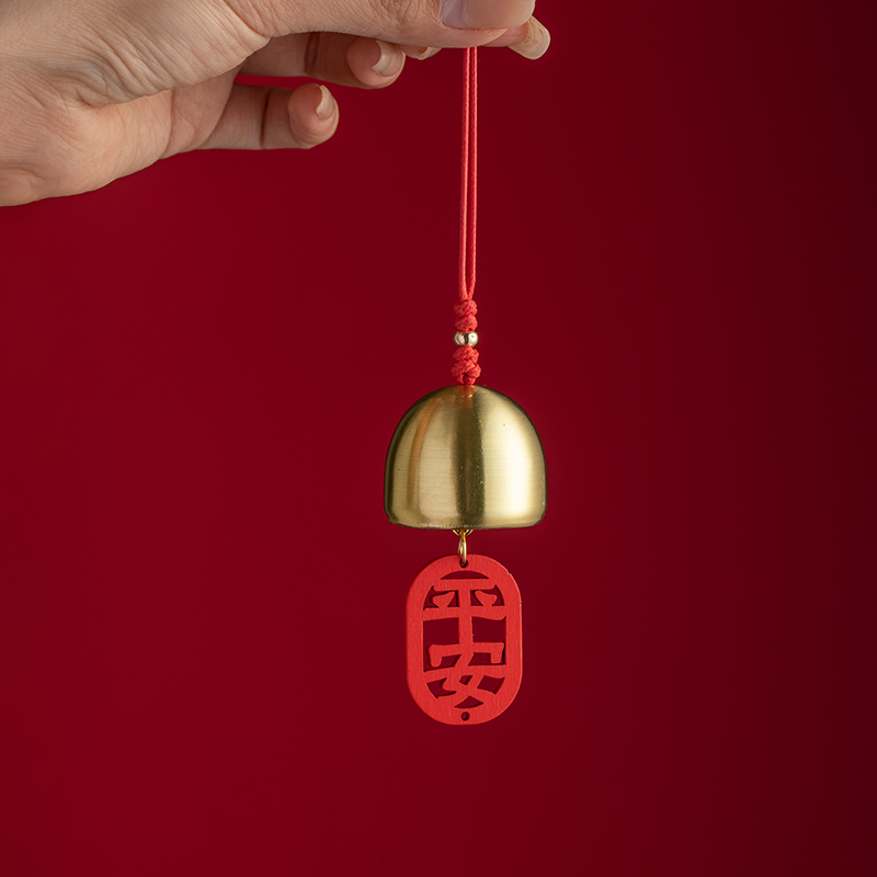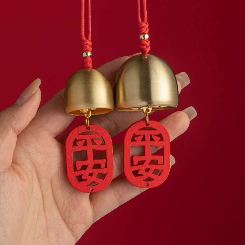 车载风铃原创黄铜铃铛铜铃汽车挂件后视镜车内吊饰装 饰品平安福牌