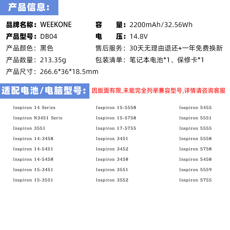 5458 3458 3476 5455 5555笔记本电池 戴尔灵越Inspiron 5459 5559 3559 3459 M5Y1K 5468 3451