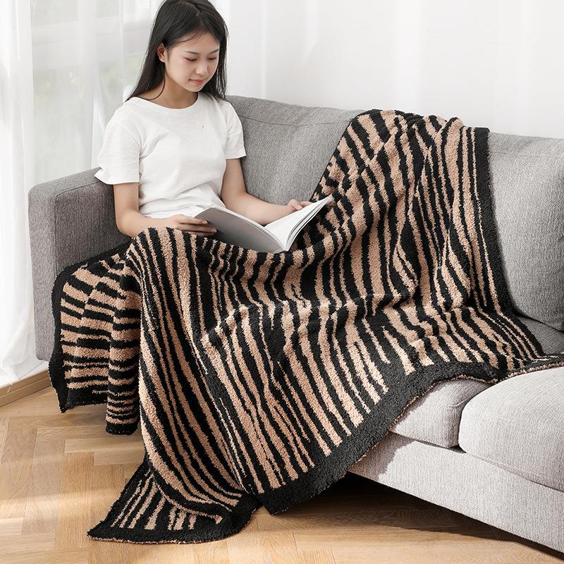 ins双层豹纹纹轻奢半边绒休闲毛毯家用北欧披肩毯沙发午睡盖毯车