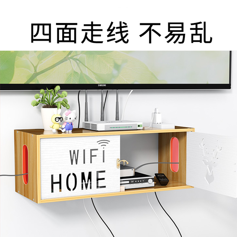 wifi路由器收纳盒壁挂机顶盒木质电视柜墙上置物架神器插排座电线