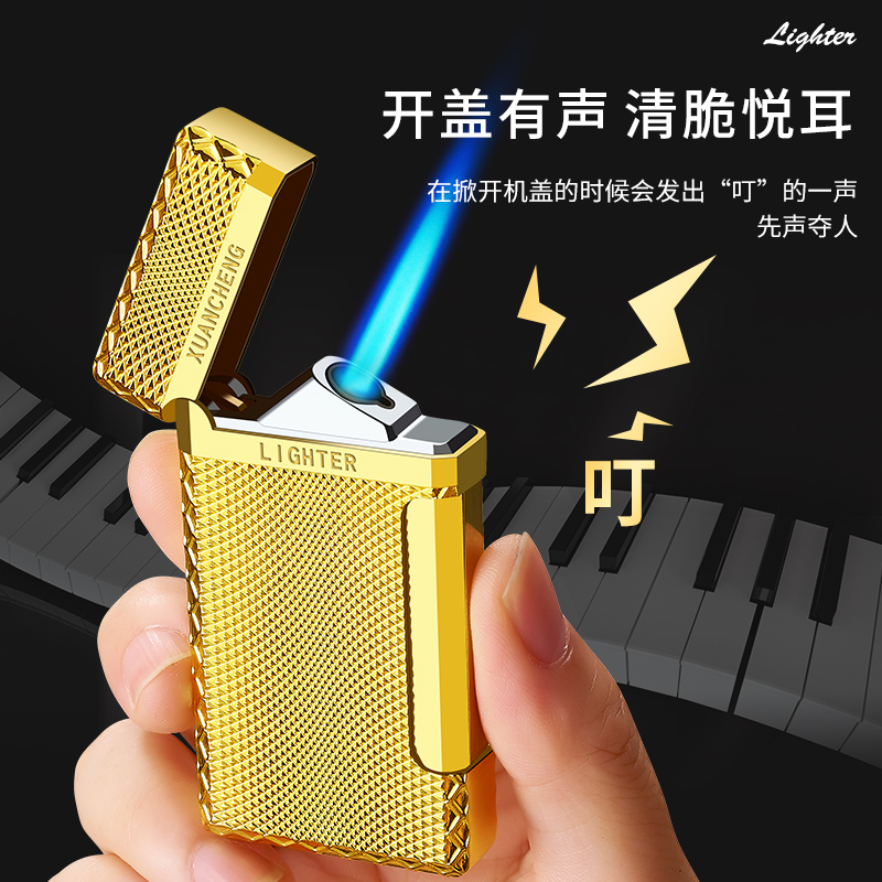 高档耐用潮 金属蓝焰直冲火机男士 新款 朗声防风打火机充气创意个性