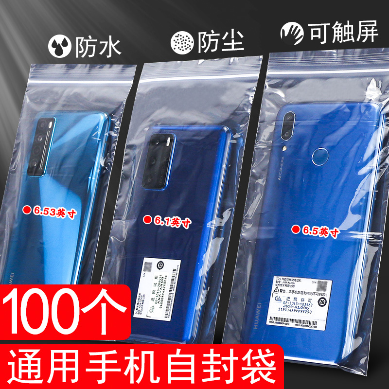 100个装 袋子防水袋自封袋透明可触屏口罩护士一次性手机密封袋触摸屏封口袋塑料薄膜保护袋防尘隔脏 放手机