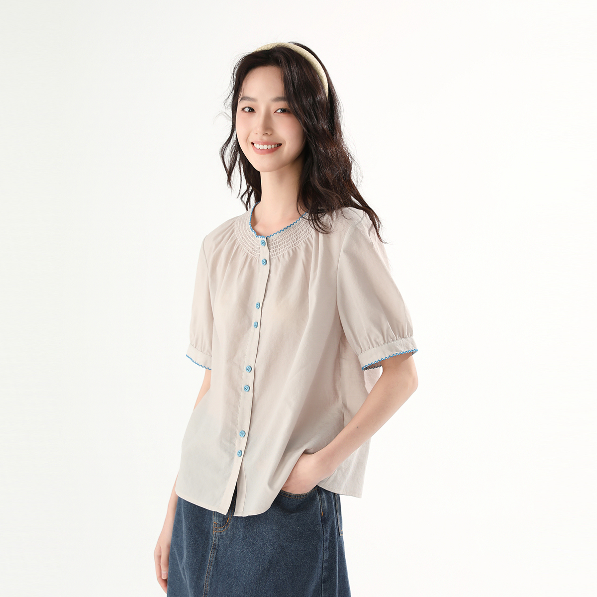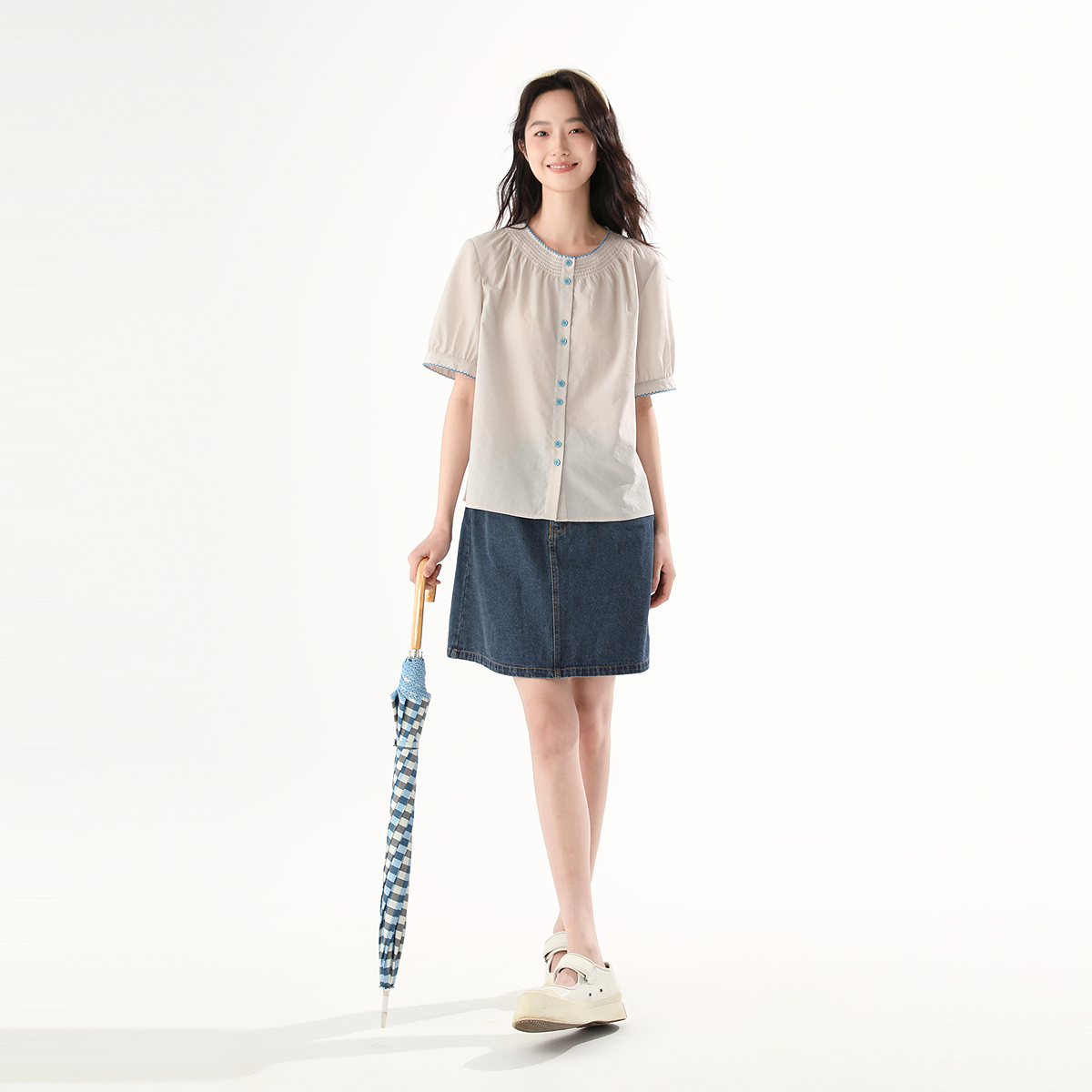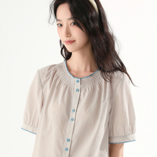 女装 时尚 短款 显瘦撞色气质短袖 飞鸟和新酒2025夏季 圆领小衫 新款