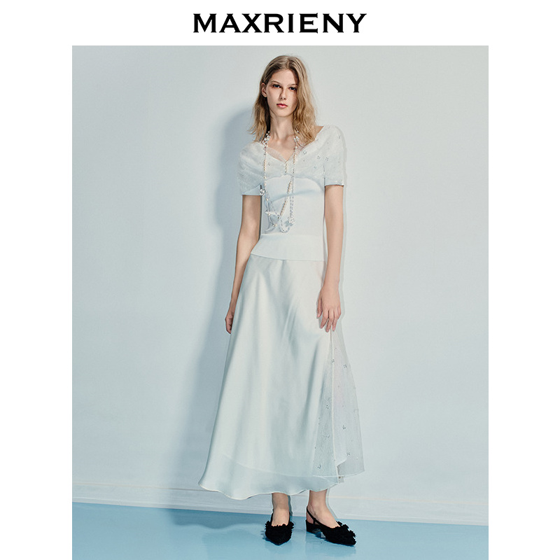 气质感上衣女 MAXRIENY精致浪漫感网纱堆褶针织衫 第2件半价