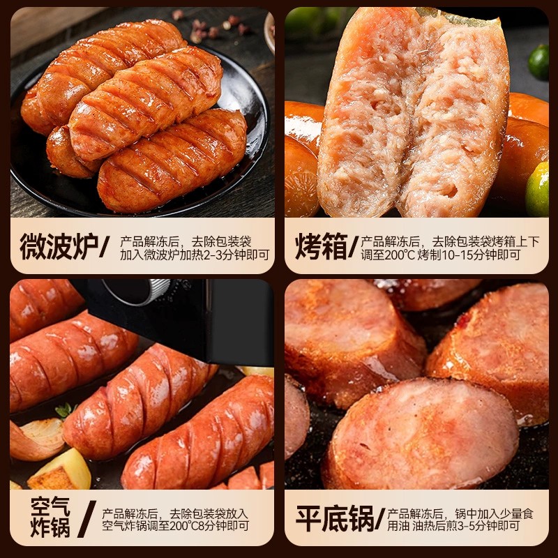 火山石烤肠脆皮肉肠早餐空气炸锅食材纯黑胡椒香肠地道火腿热狗肠