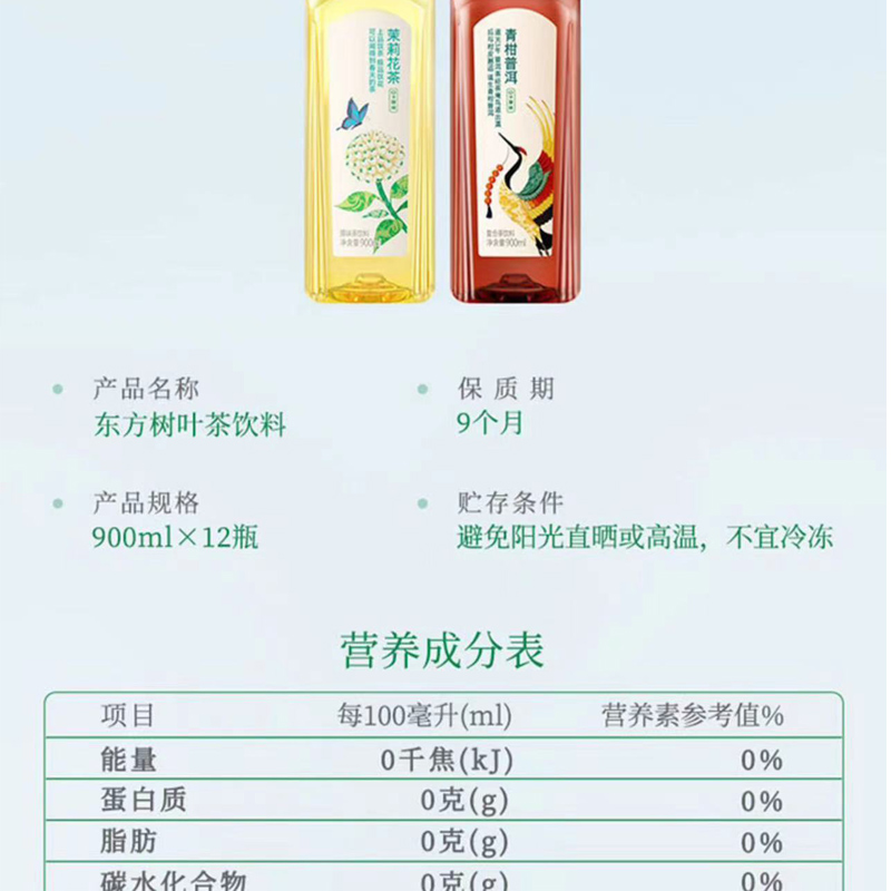 东方树叶900ml茉莉花茶乌龙青柑普洱无糖纯茶饮料特价