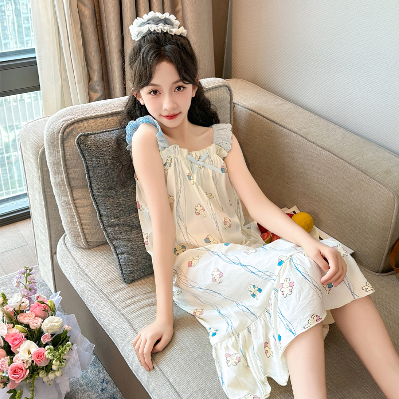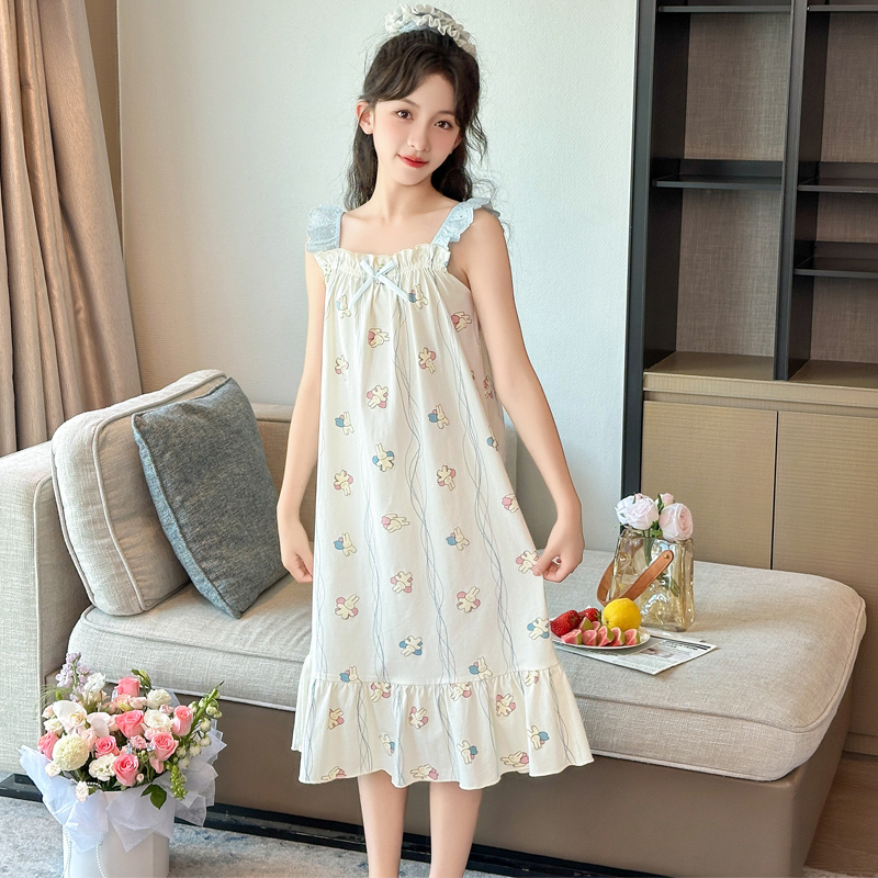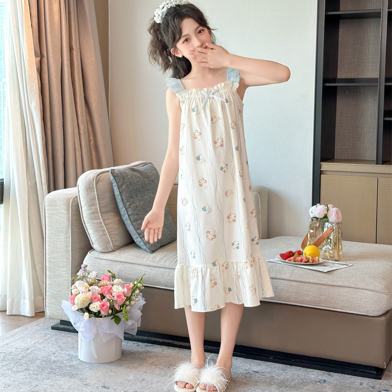 女童睡裙夏季 儿童睡衣家居服女孩a类公主风吊带裙子 纯棉2025新款