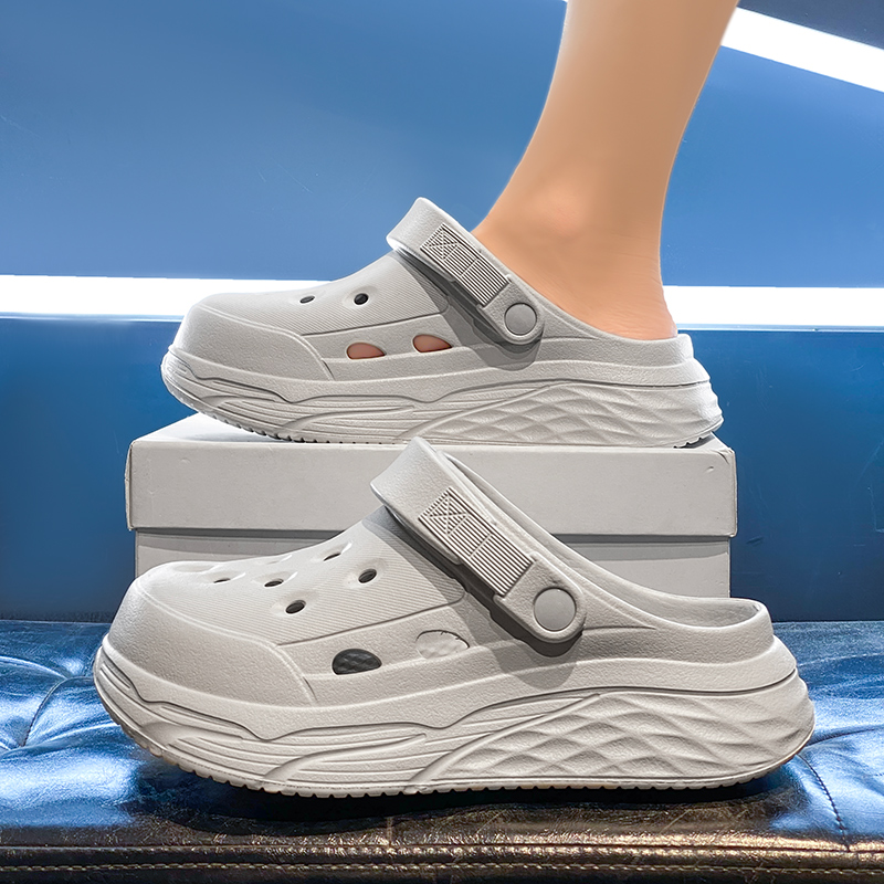 户外防滑沙滩鞋 朴西奶酪情侣厚底踩屎感洞洞鞋 包头拖鞋 夏季 男 女款
