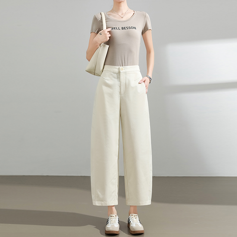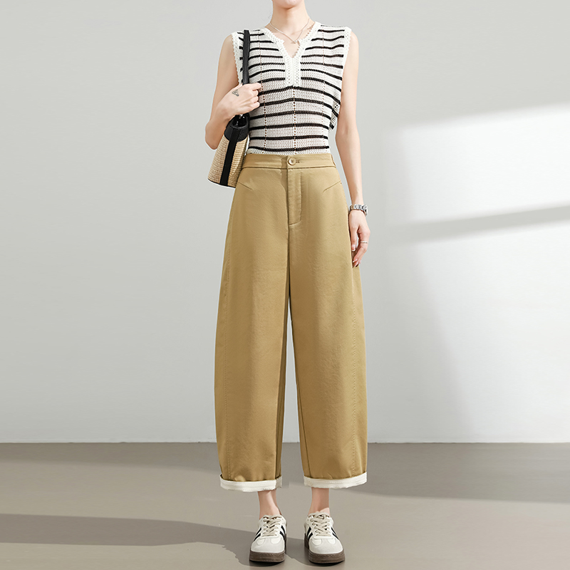 高腰垂感宽松显瘦九分卷边休闲弯刀裤 薄款 女夏季 莱赛尔天丝哈伦裤
