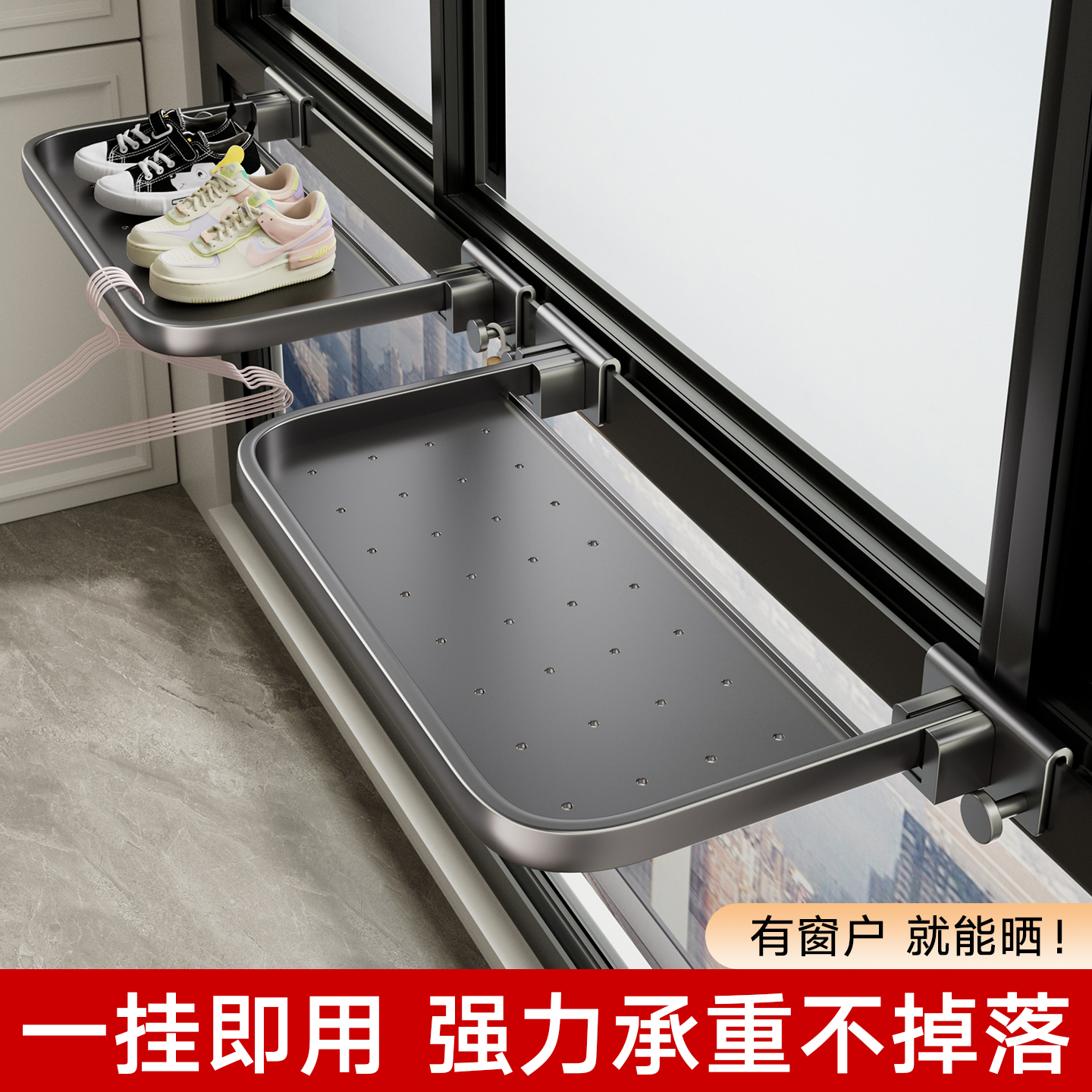子神器 折叠置物架挂钩晒鞋 窗框晾鞋 架阳台衣架窗护栏晾衣架卡扣式