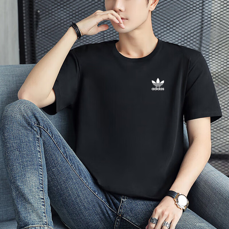 T恤收口长裤 阿迪达斯三叶草男装 圆领短袖 秋季 运动两件套 休闲套装