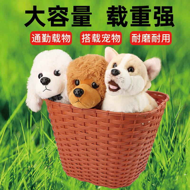 Tooquv儿童自行车车筐玩偶卡通车篮童车编织前车筐篓单车遛娃神器
