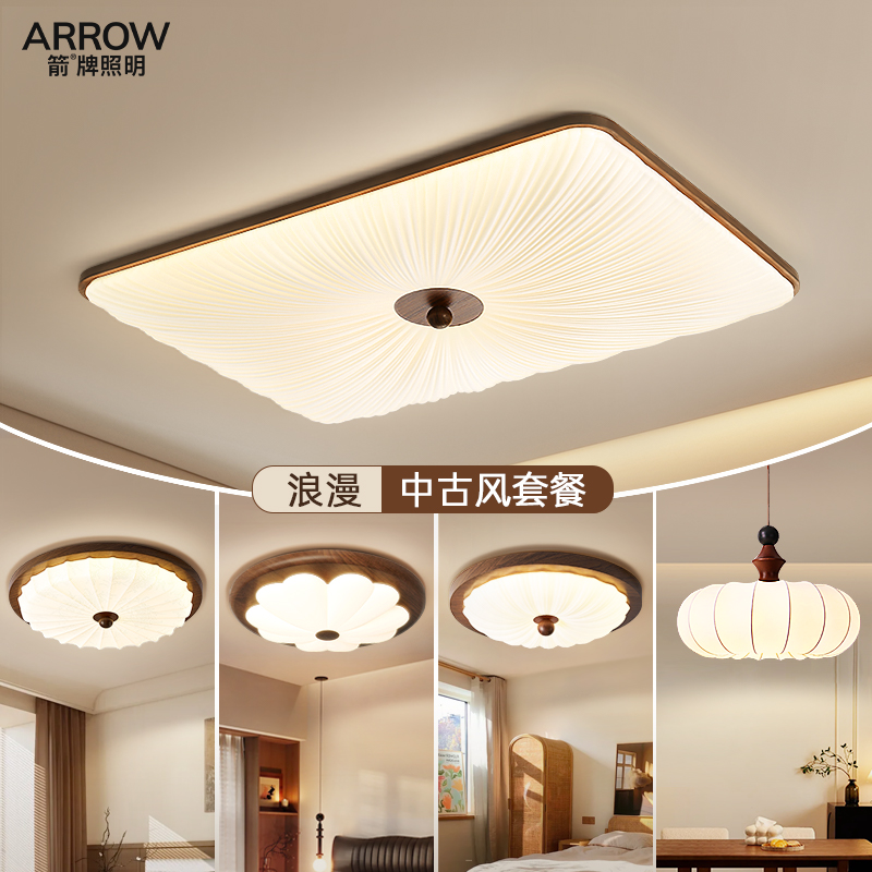 复古灯具 胡桃木色高级感法式 箭牌中古吸顶灯新中式 客厅灯2025新款