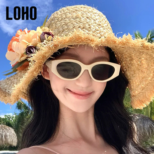 LOHO猫眼太阳镜女款 复古窄框俏皮防紫外线近视旅游偏光墨镜 25新款