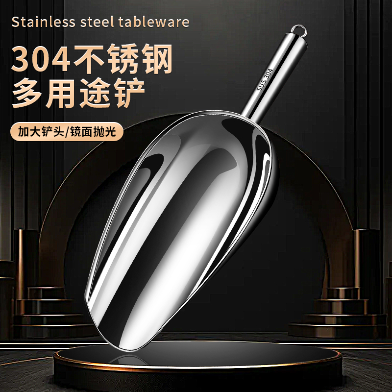 304不锈钢米铲商用玉米料茶叶铲粮食爆米花平底铲子超市撮瓢铲瓢