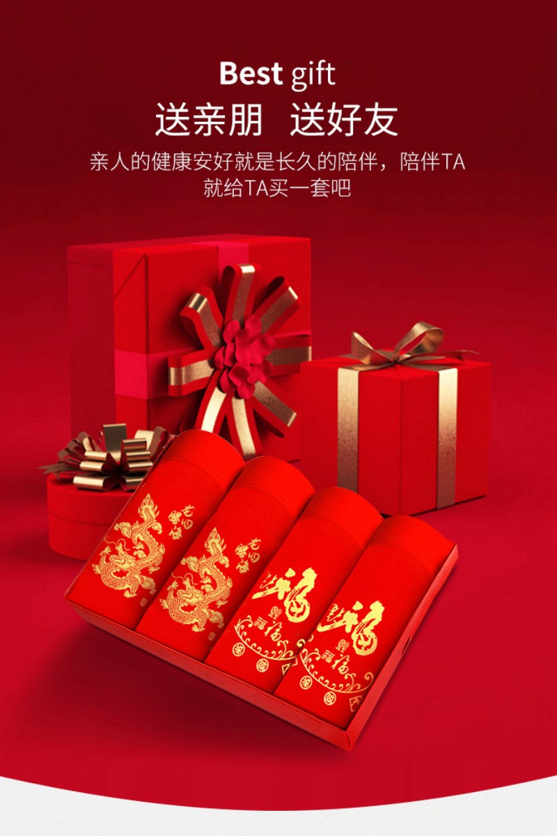 红色内衣内裤 本命年红内裤 男士 袜子纯棉大码 属龙 男龙年秋冬短裤