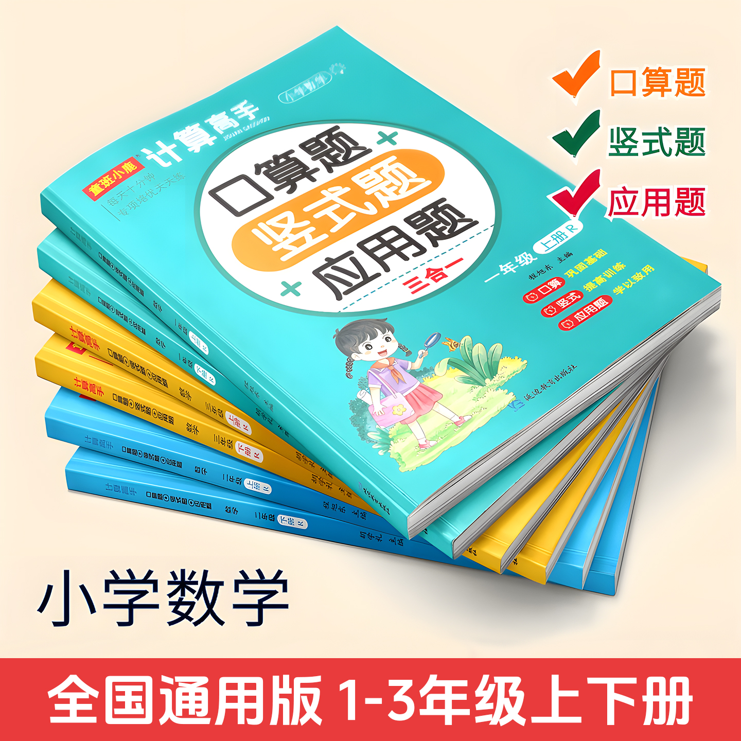 一二三年级上下册数学口算天天练大通关口算竖式 应用题三合一练习册专项训练小学生学前班练习题计算题卡幼小衔接教材全套一日一练