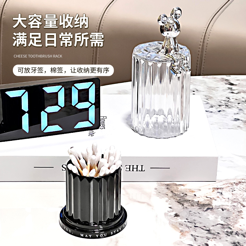 轻奢牙签盒家用高档牙线罐个性 创意牙签筒高颜值高级棉签收纳盒桶