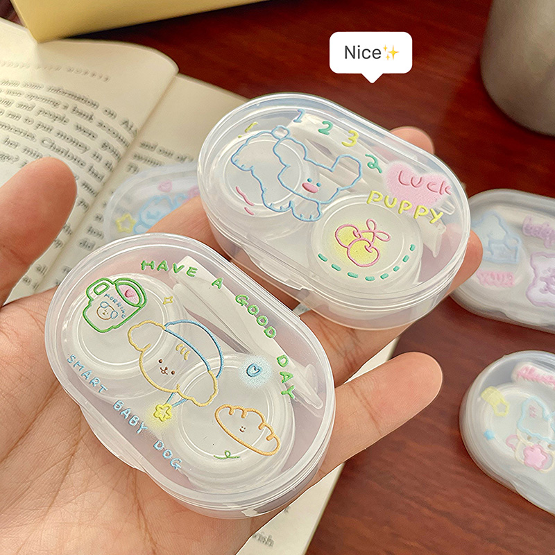 隐形眼镜护理盒美瞳盒便携收纳盒卡通可爱伴侣盒双联盒轻便简约