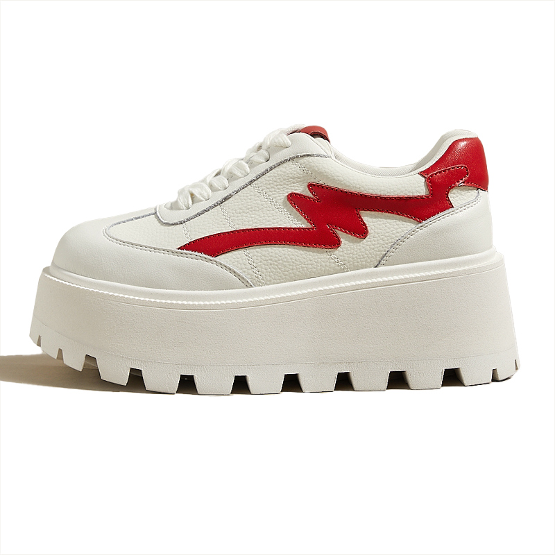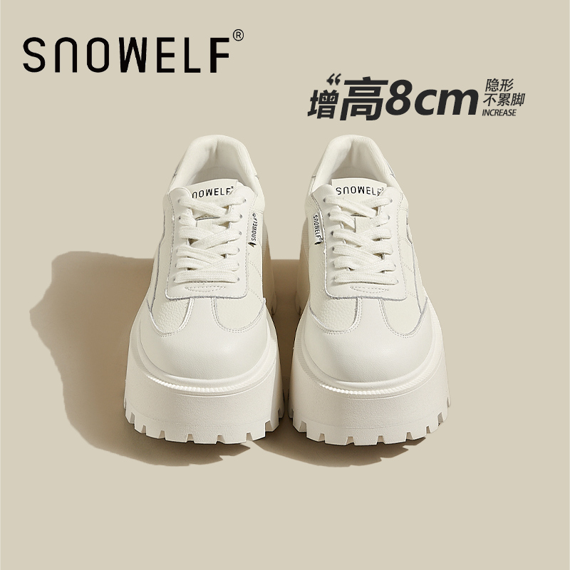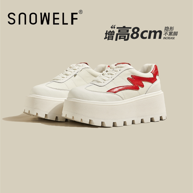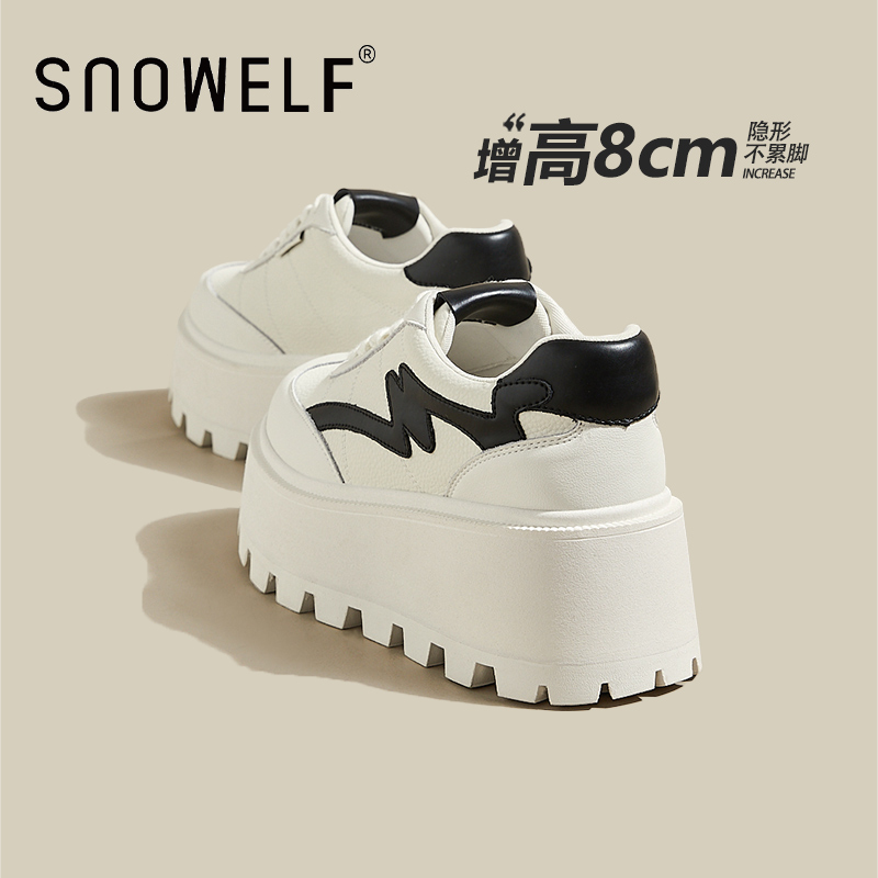 摇摇松糕系带增高0708 真皮休闲百搭小白鞋 吉祥鸟超轻女鞋 2025新款