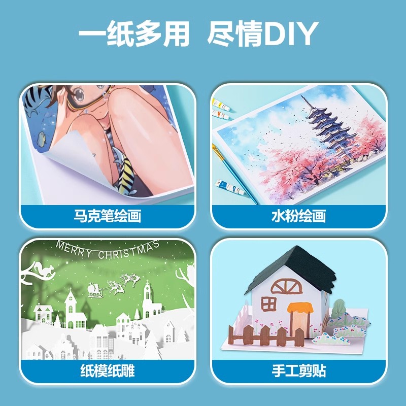 得力白卡纸手工硬卡纸8k加厚白卡纸A3美术绘画专用手绘白卡纸手抄报230克画纸马克笔纸diy贺卡折纸A4绘图纸