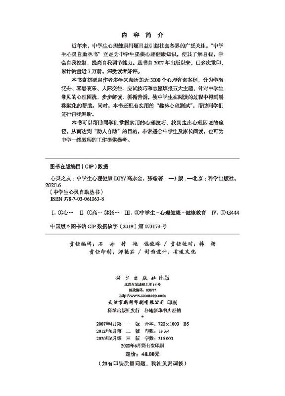 9787030610638 社书籍KX 中学生心理健康DIY 高永金 张瑜 心理健康书籍 心灵之友 中学生心灵自助丛书 科学出版 主编 书