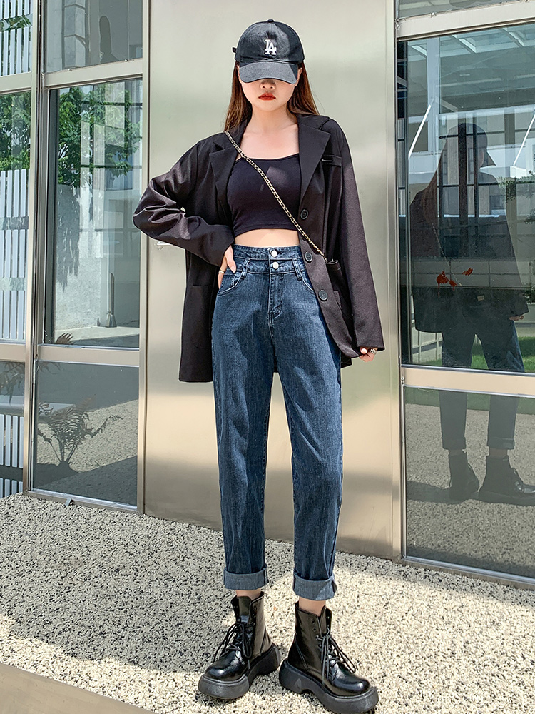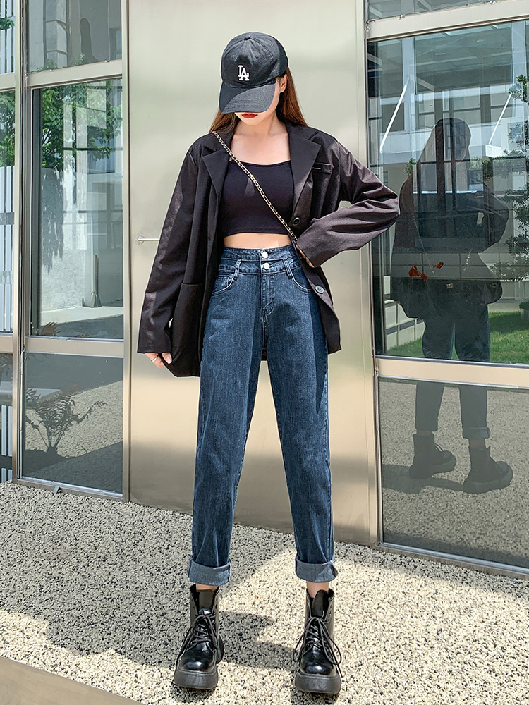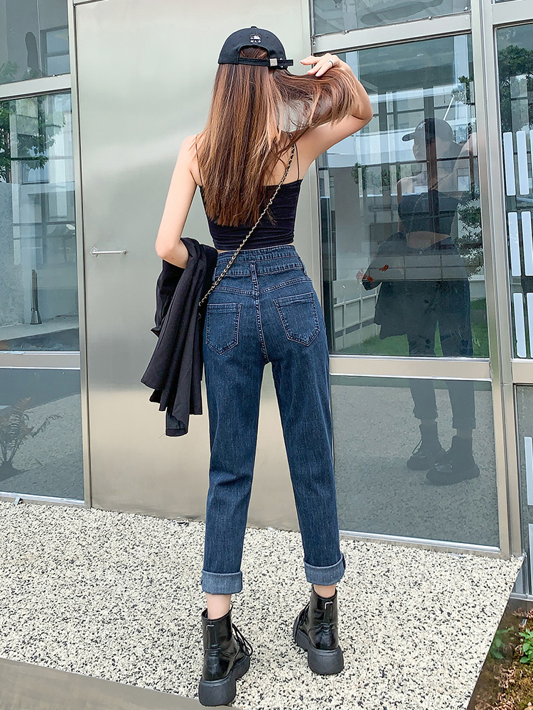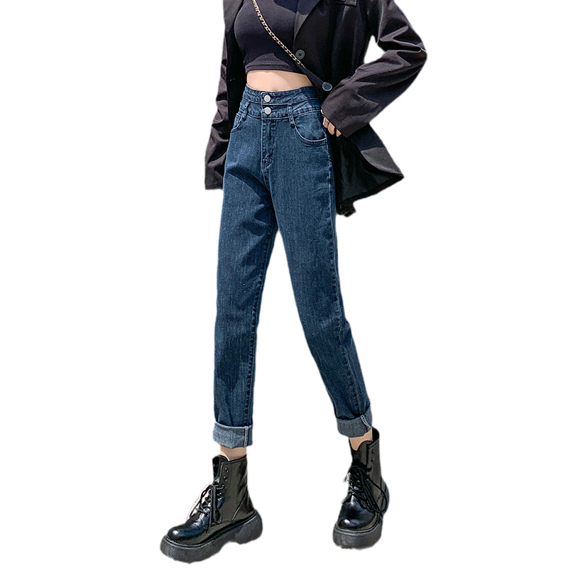胖mm显瘦萝卜裤 弹力大码 子 女宽松2025春秋新款 高腰加绒老爹牛仔裤