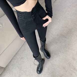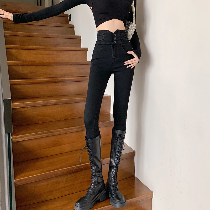 舒适休闲高腰黑色小脚铅笔牛仔长裤 TeenieWeenie小熊奥莱女装 秋季