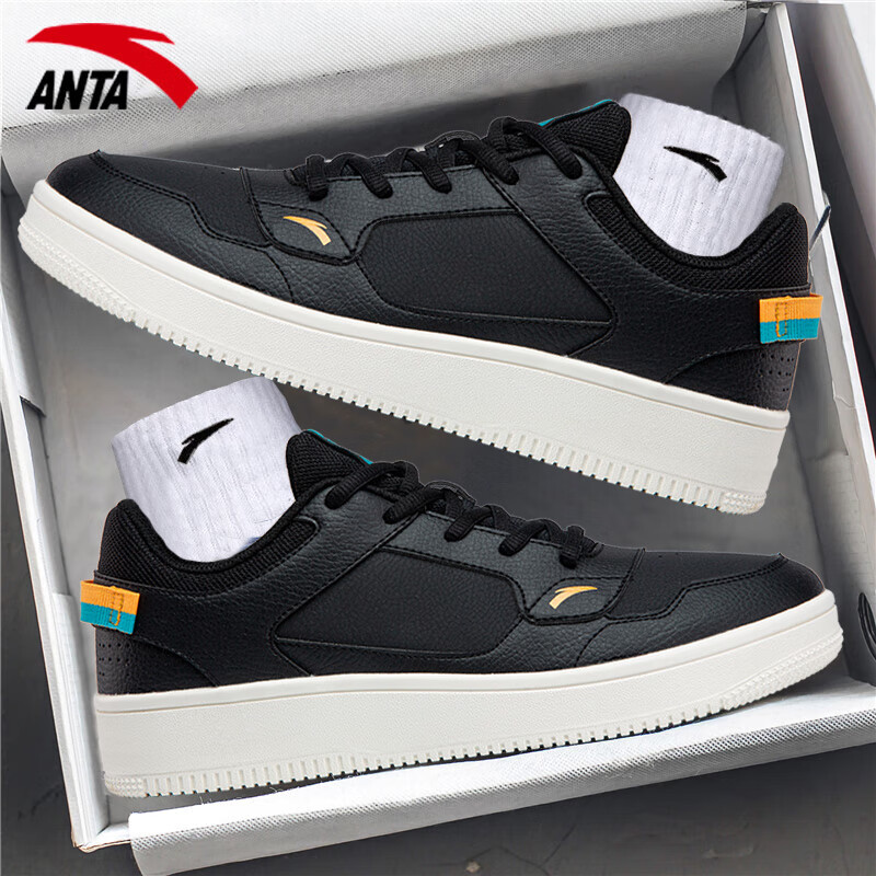 黑色休闲鞋 子男款 平板鞋 官方旗舰店男鞋 男 安踏板鞋 运动鞋 男秋冬鞋