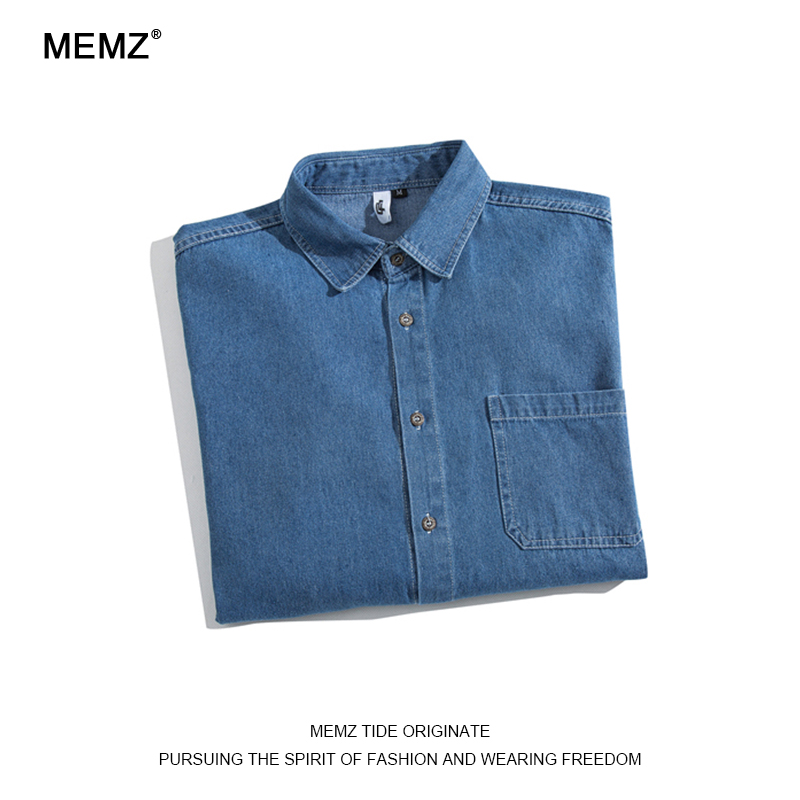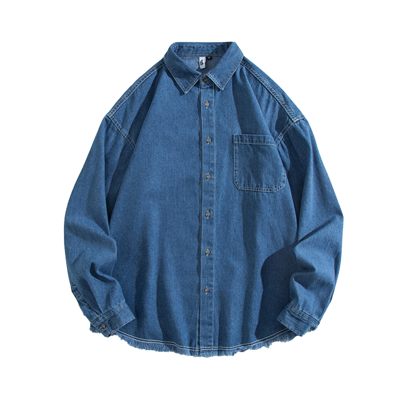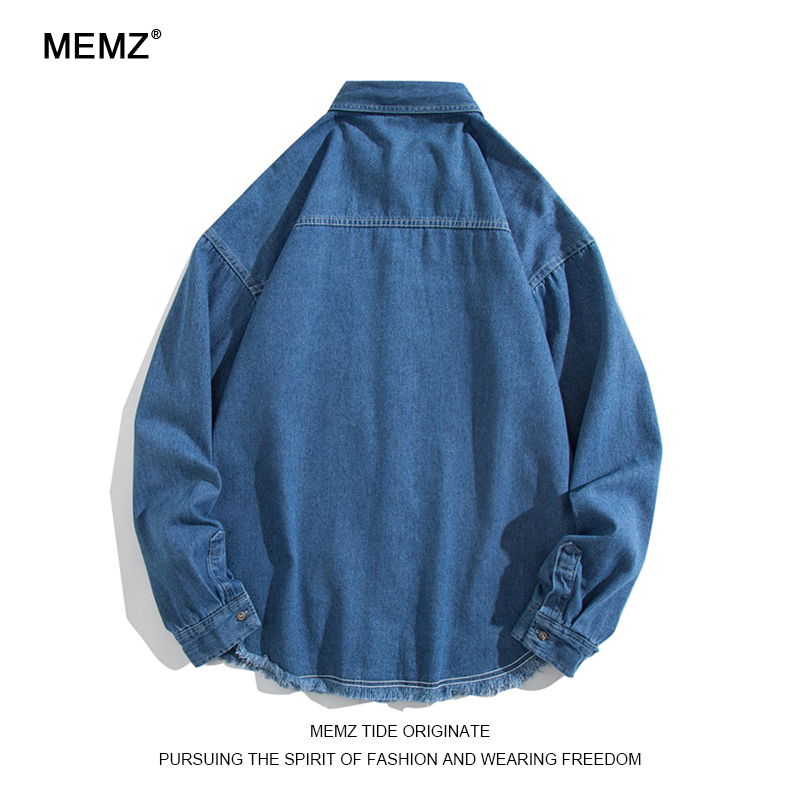 衬衣潮牌高街简约纯色毛边衬衫 MEMZ秋季 港风宽松休闲学生百搭长袖