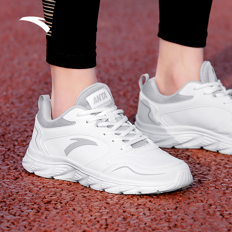 休闲鞋 安踏漫步 舒适慢跑革面运动鞋 女秋季 轻质缓震皮面跑步鞋