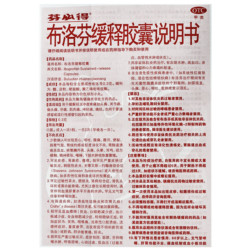 芬必得布洛芬缓释胶囊20粒止头疼退热偏头痛痛经牙痛感冒发热流感